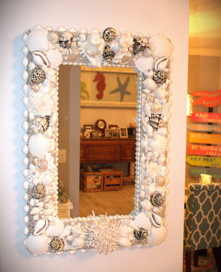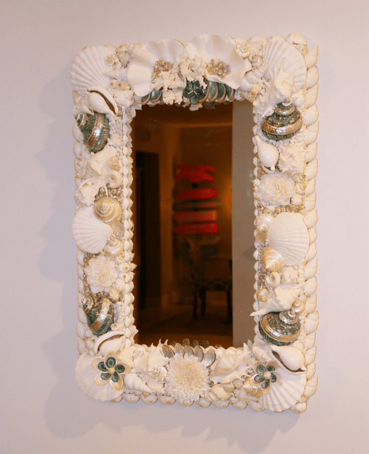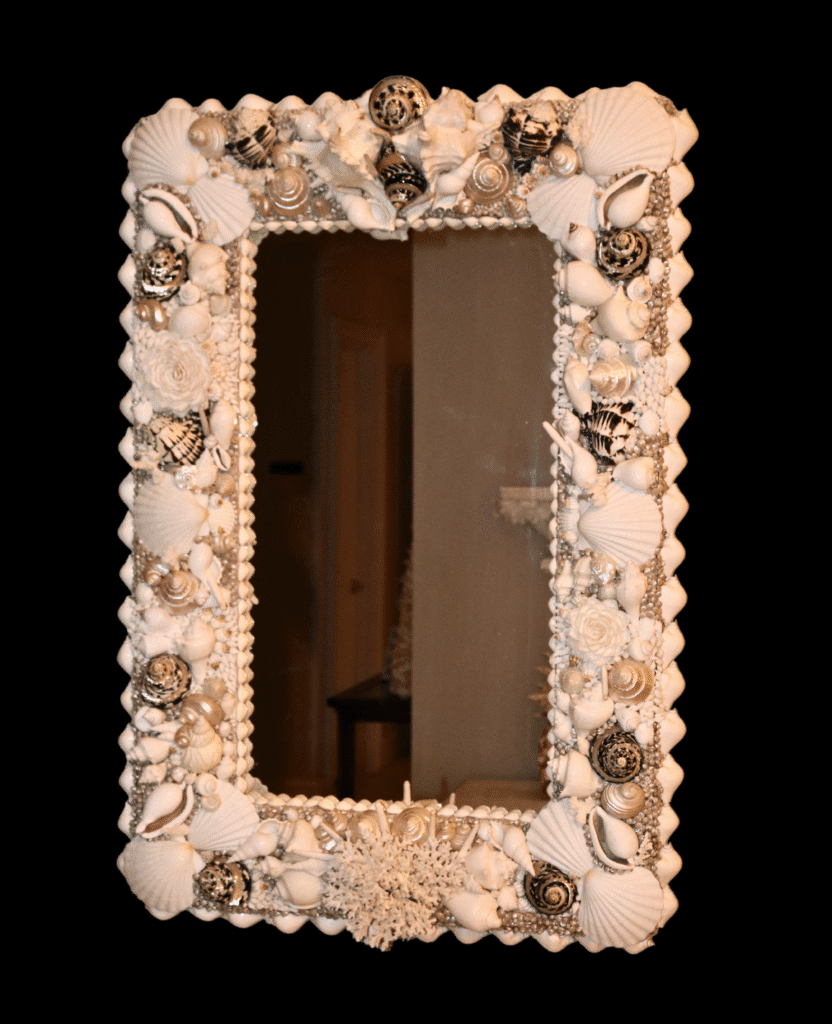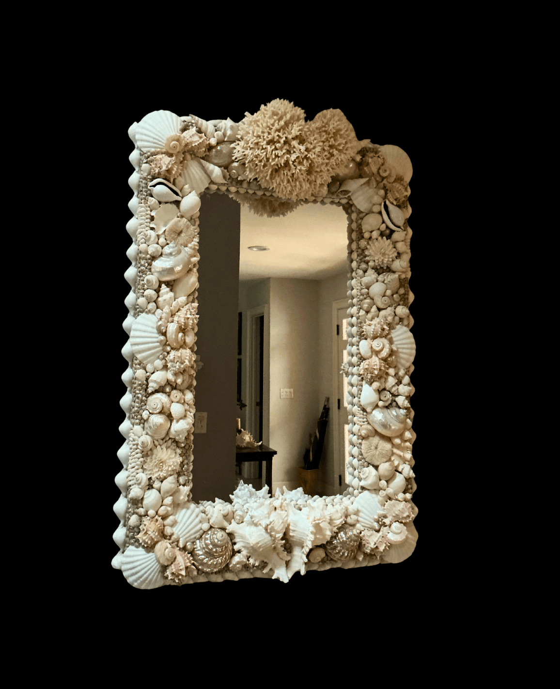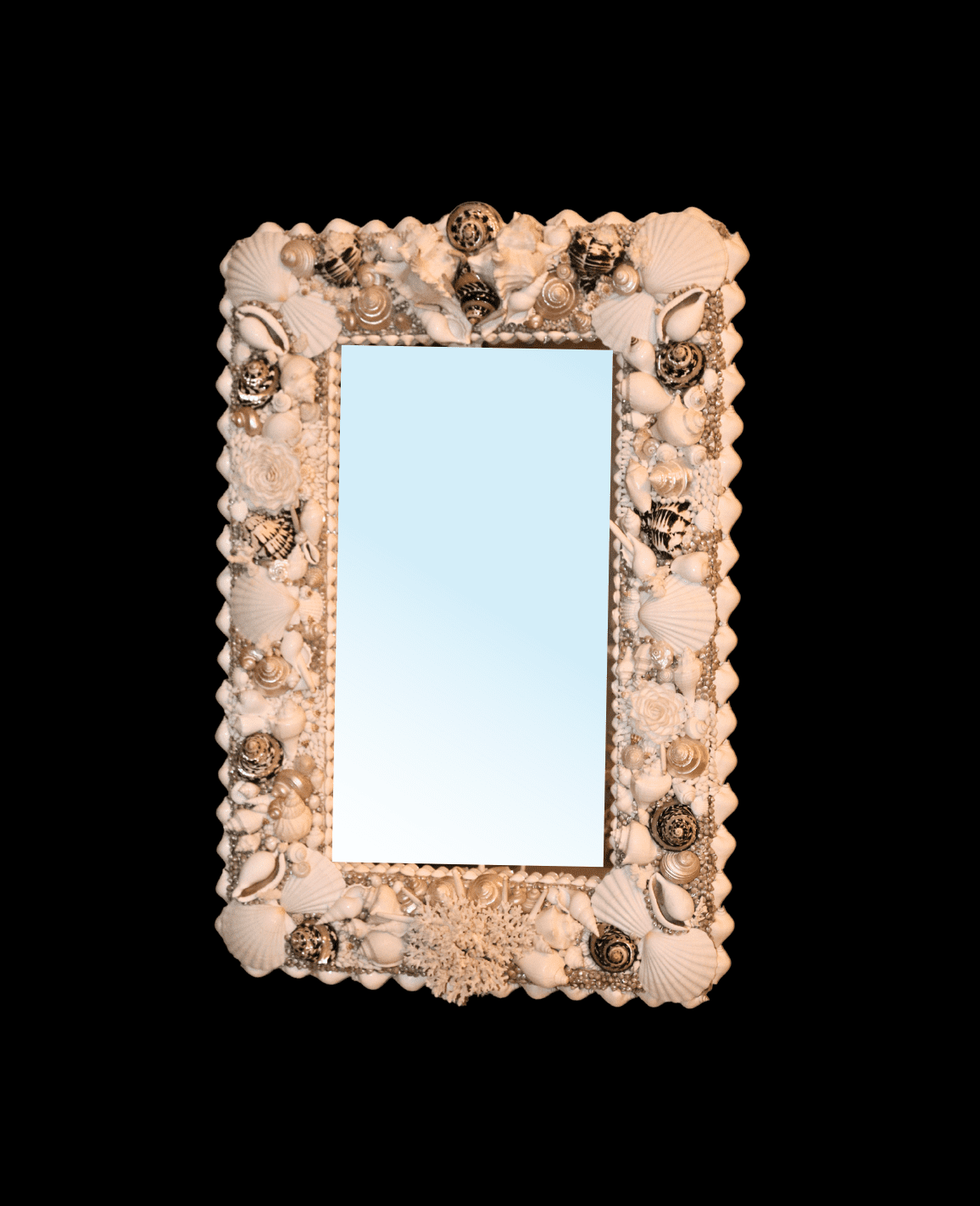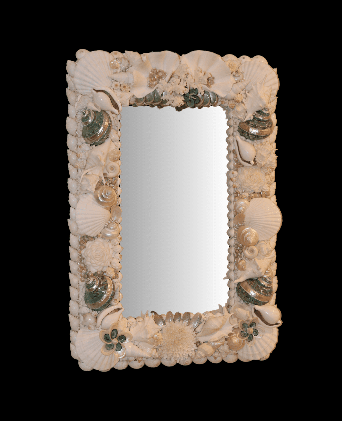 Each mirror is a unique piece of art, inspired by European shell artists. Quality shells and many weeks of work go into each design. Contact me to customize one to fit your style. You can select the size and what types of materials you would like for me to use.