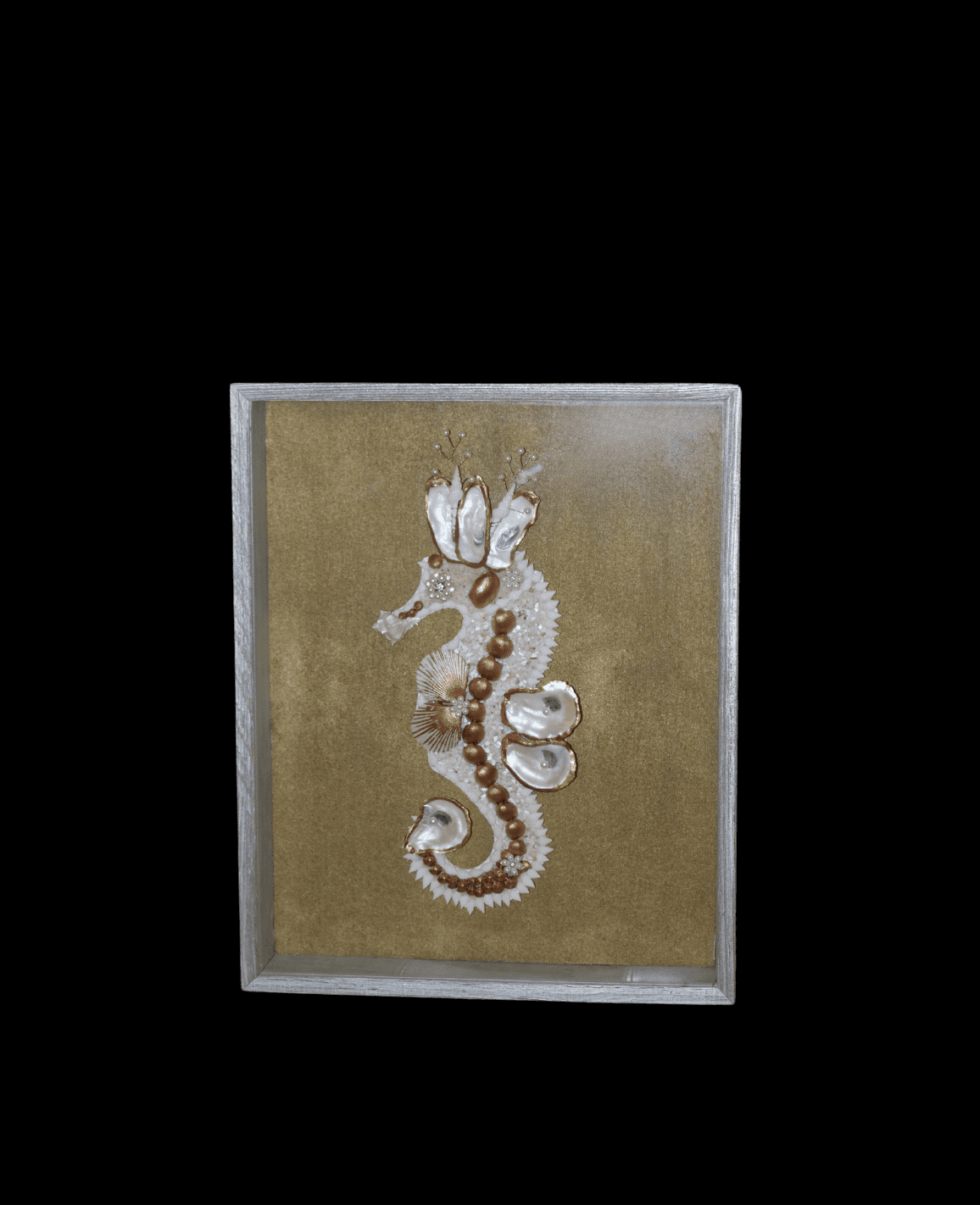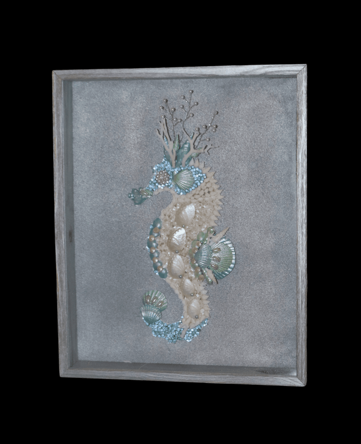 Each piece is uniquely handcrafted with care, using genuine seashells to create one-of-a-kind pet abstract shell portraits, mirror frames adorned with coastal elegance, and intricate shell mosaics.